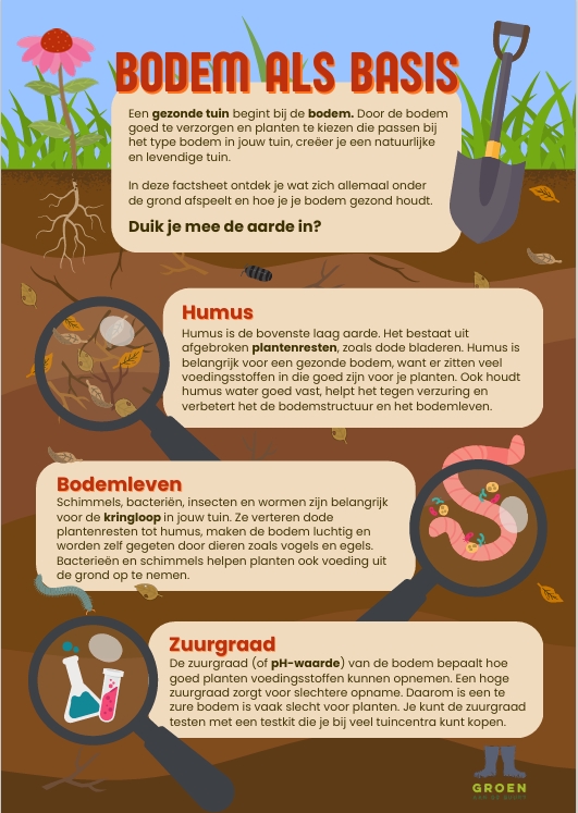 Een gezonde tuin begint bij de bodem. Door de bodem goed te verzorgen en planten te kiezen die passen bij het type bodem in jouw tuin, creëer je een natuurlijke en levendige tuin. In deze factsheet leren we je alles over de aarde!
